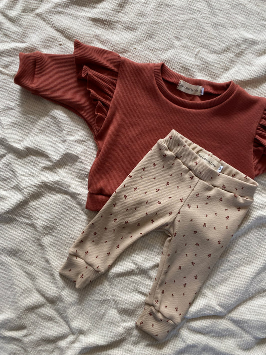 Meisjes kinderlegging kleine bloementjesprint zand brique ribstof