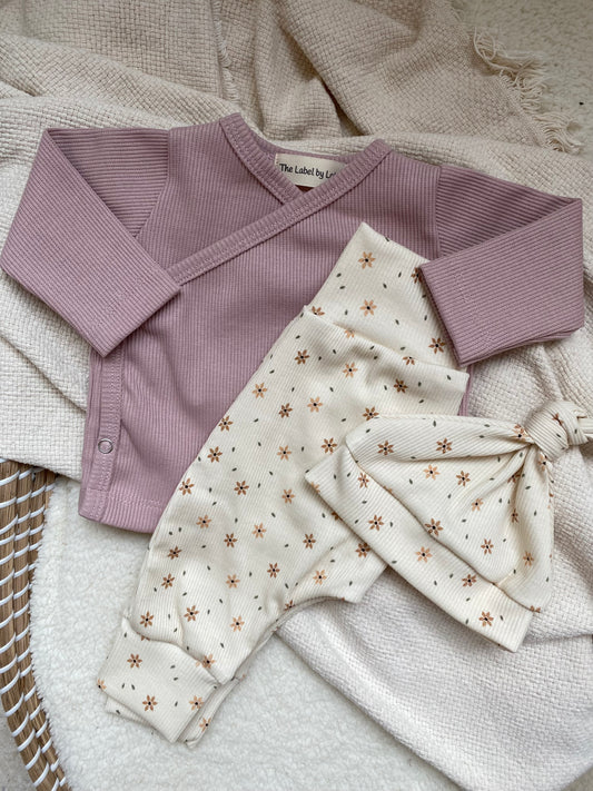 Meisjes knoopmutsje Lou bloemenprint zachtroze
