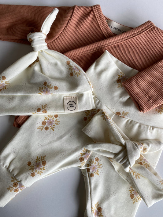 Meisjes newborn broekje bloementjesprint bruin/zand