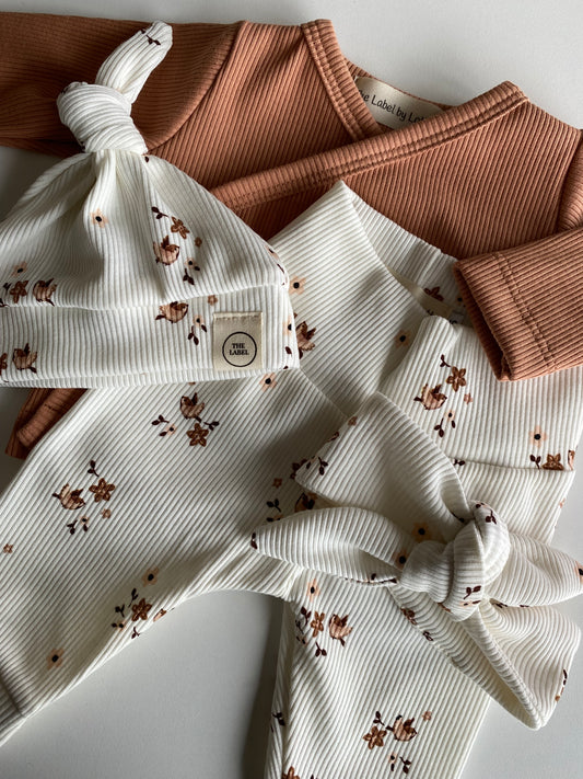 Meisjes newborn set Lola bloemenprint – broekje & knoopmutsje