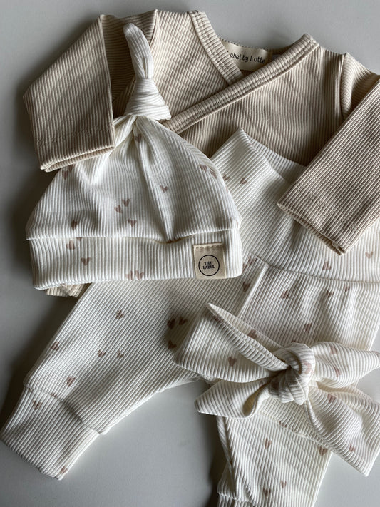 Newborn broekje | Lia hartjes beige