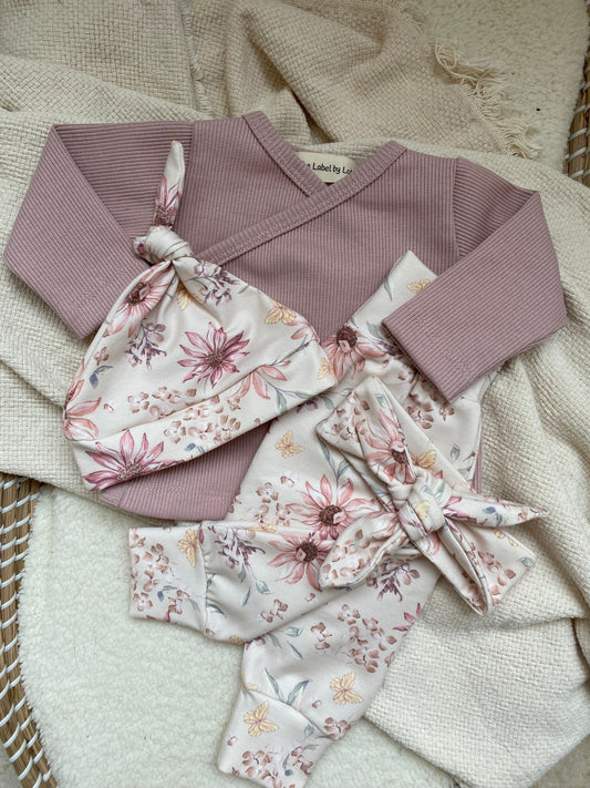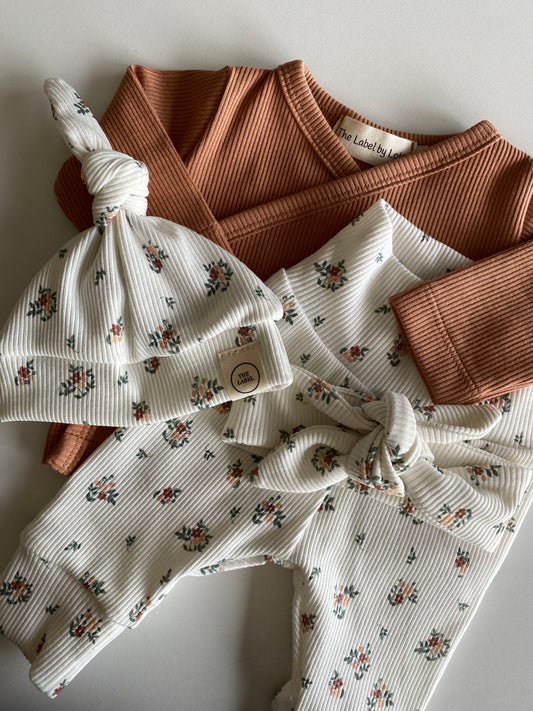 Newborn meisjes knoopmutsje Lola bloemenprint offwhite