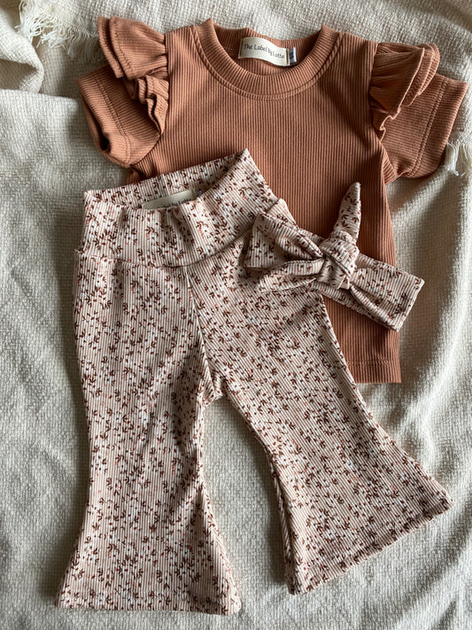 • Meisjes t-shirt dubbel ruffletje ribstof zand