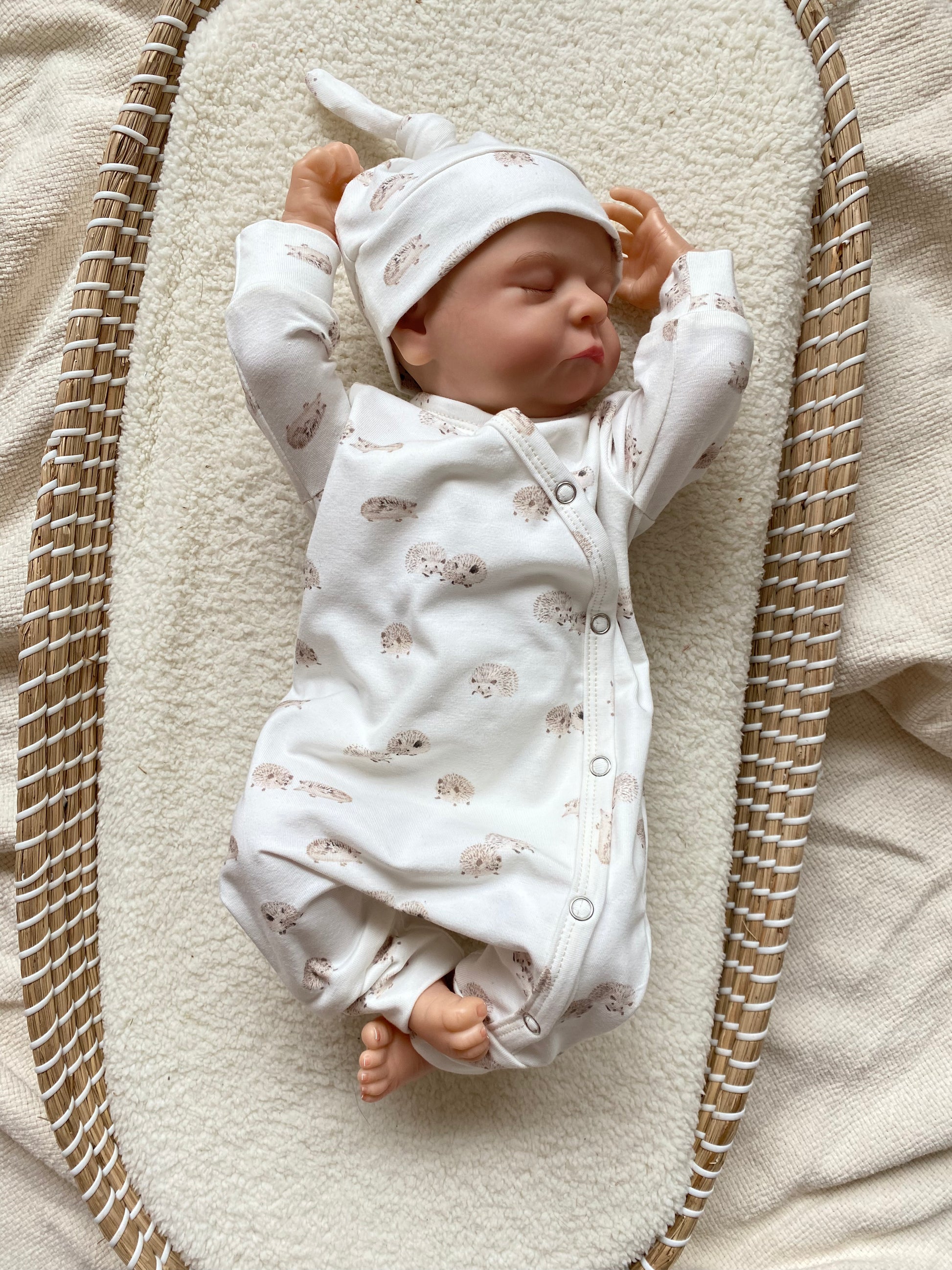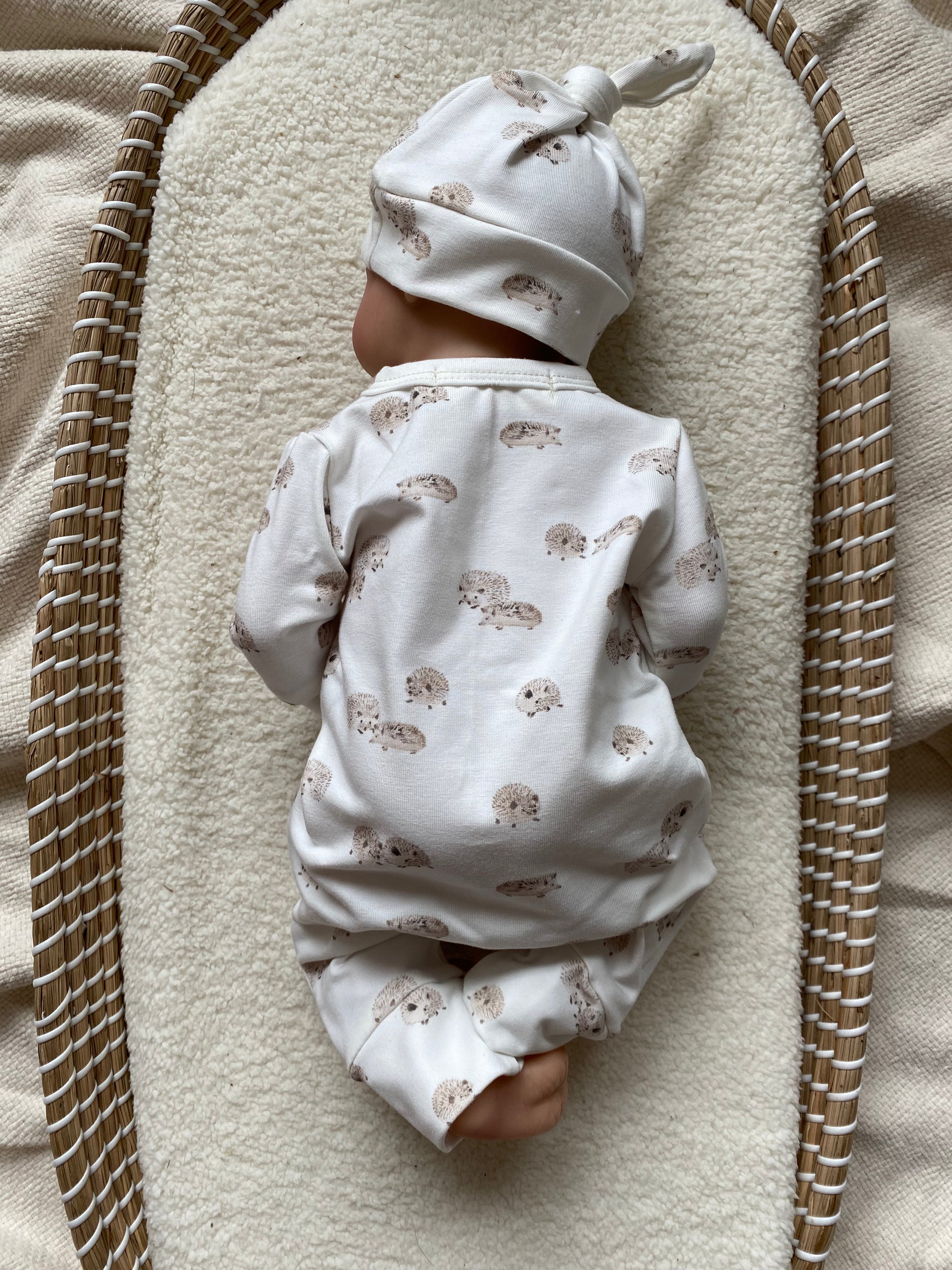 Uniseks newborn set egeltjesprint offwhite beige – broekje & knoopmutsje