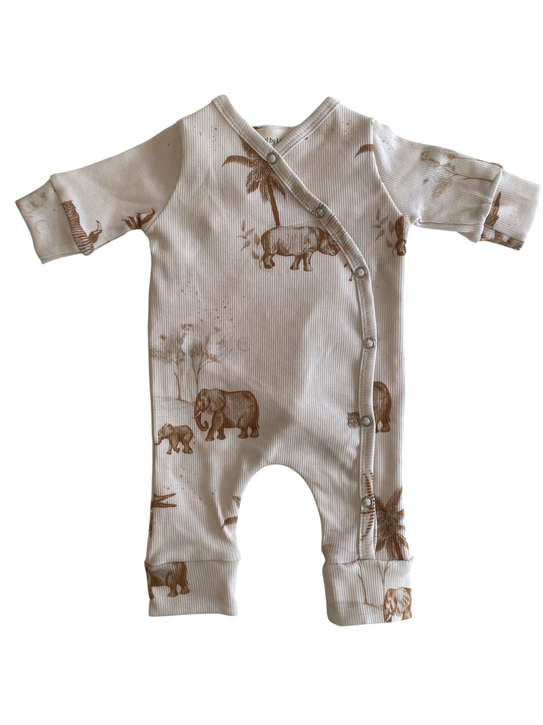 Op zoek naar het perfecte geboortepakje dat niet alleen schattig is maar ook praktisch en comfortabel? Het jongens boxpakje safaridieren ribstof beige/bruin biedt alles wat jij zoekt voor het eerste pakje van jouw baby. Dit najaars boxpakje is gemaakt van een dikkere ribstof die heerlijk zacht voelt op de tere babyhuid. Krijgt de babykamer van jouw kleintje een safaridieren thema? Dan moet het eerste pakje toch ook wel in dit thema zijn? Wij dachten van wel. En precies daarom hebben wij dit boxpakje gemaakt. Door de stoere print van safaridieren gecombineerd met rustige kleuren is dit boxpakje een heel goede keus om als eerste pakje te kiezen. En hoe schattig gaat de foto zijn van dit pakje in de babykamer?!