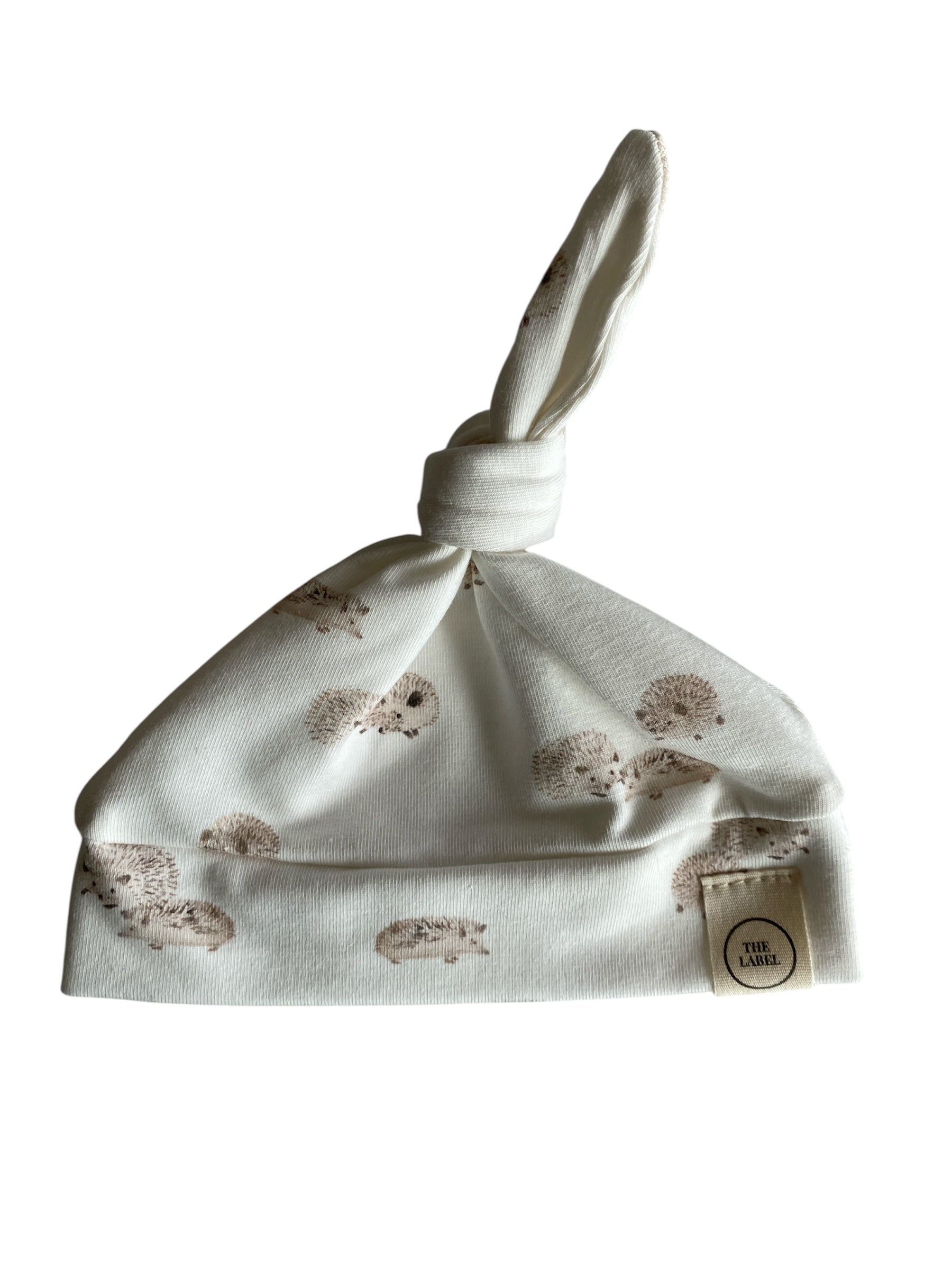 Uniseks knoopmutsje egeltjesprint offwhite beige