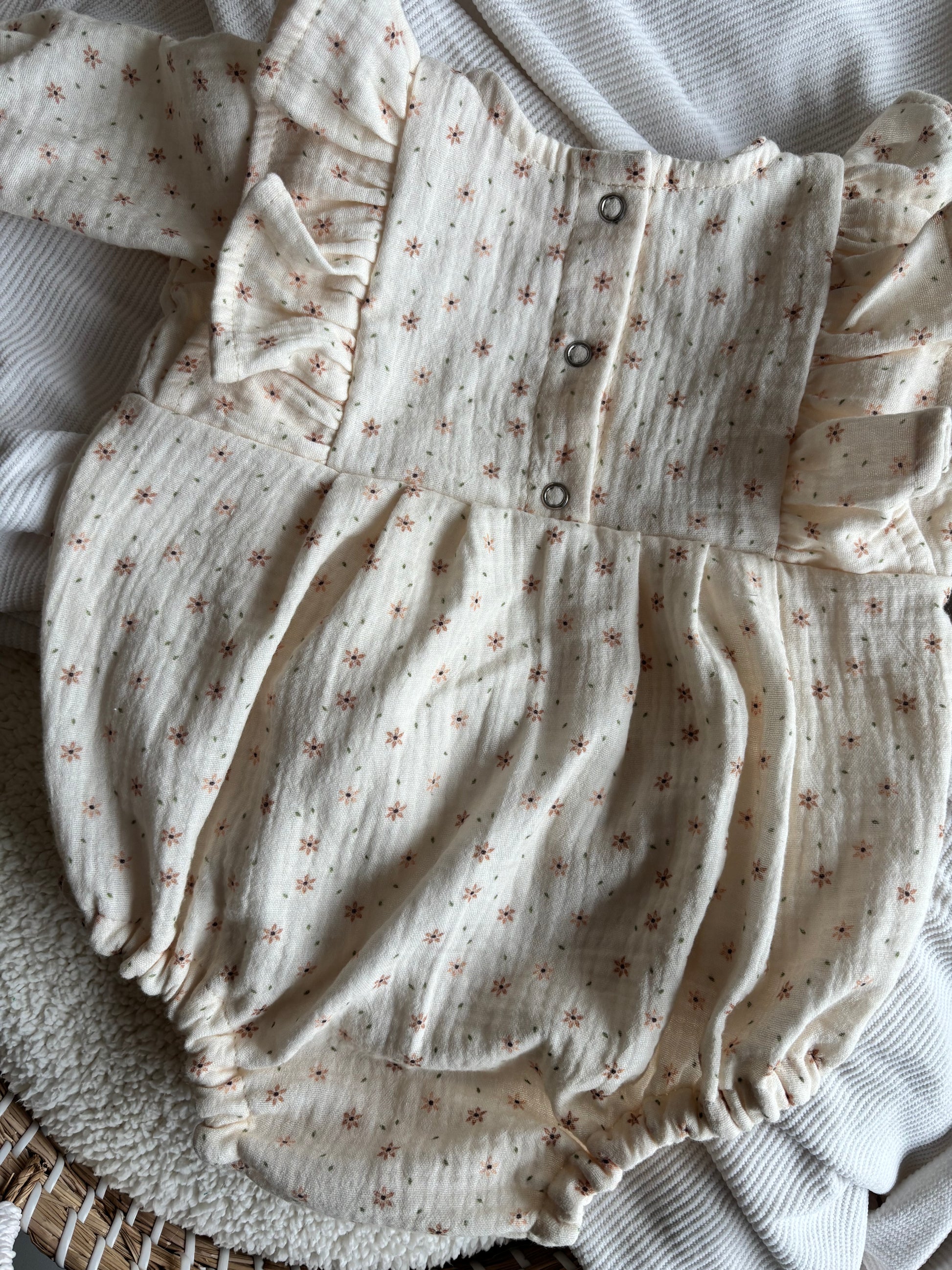 Deze prachtige romper wordt van begin tot eind met de hand gemaakt in eigen slaapkameratelier. Het pakje wordt netjes en zorgvuldig afgewerkt. Je voelt en ziet alle liefde die in deze romper met ruffletjes is gegaan.